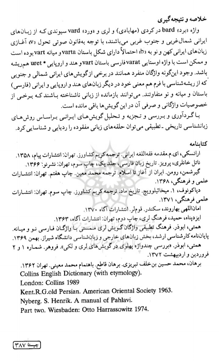 ۱-در لری بختیاری واژه های " تر" و "پی" معنای: بنیاد،دنبال،اثر،نشان،رد،پایه،ریشه را میدهند