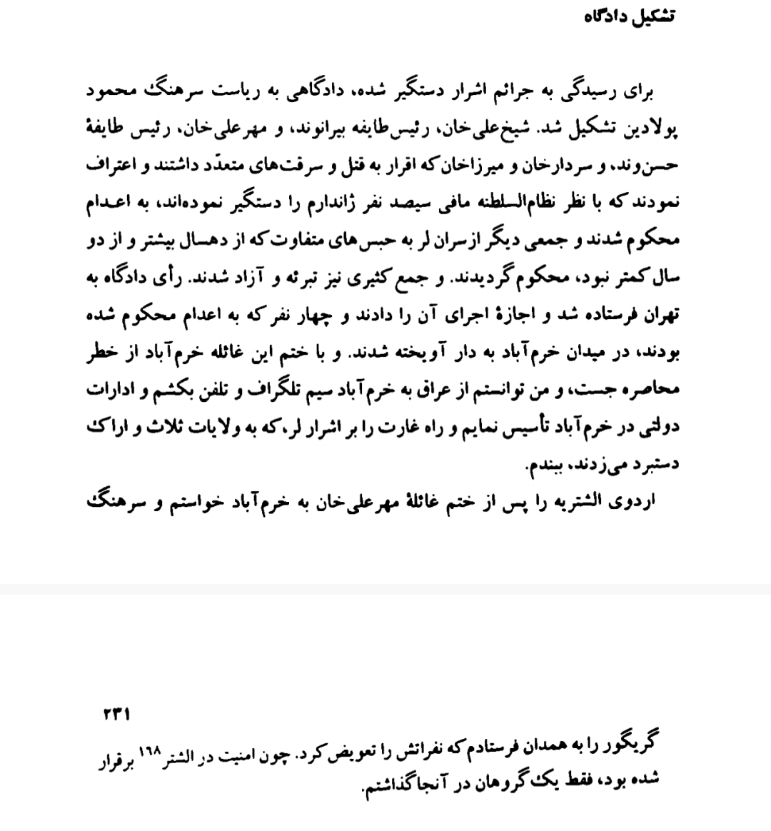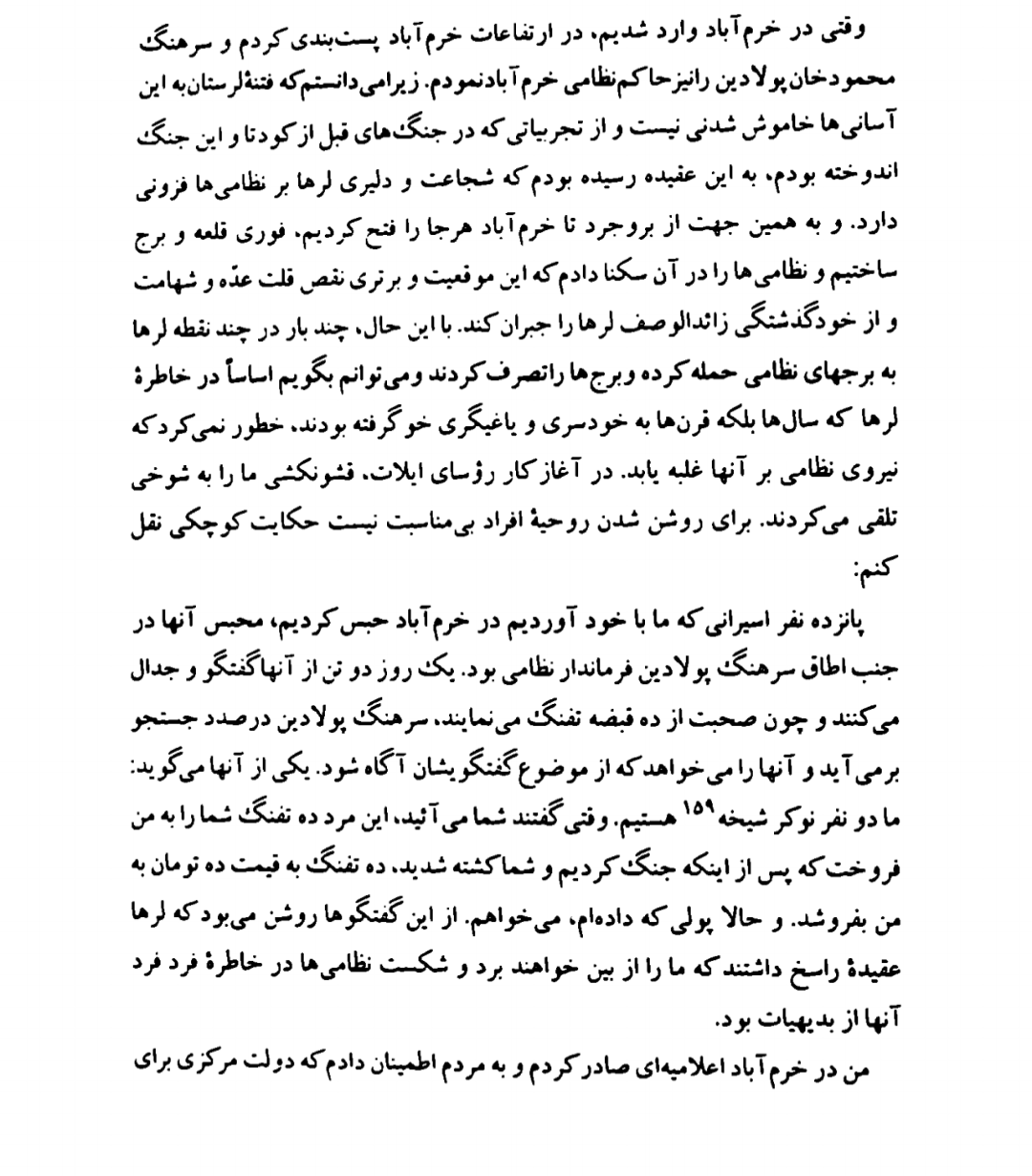 و حتی قشون چند ده هزارنفری لرها که خود سپهبد از جنگاوری و شهامت لرها میگویدهم نتوانستند در نهایت پیروز شوند