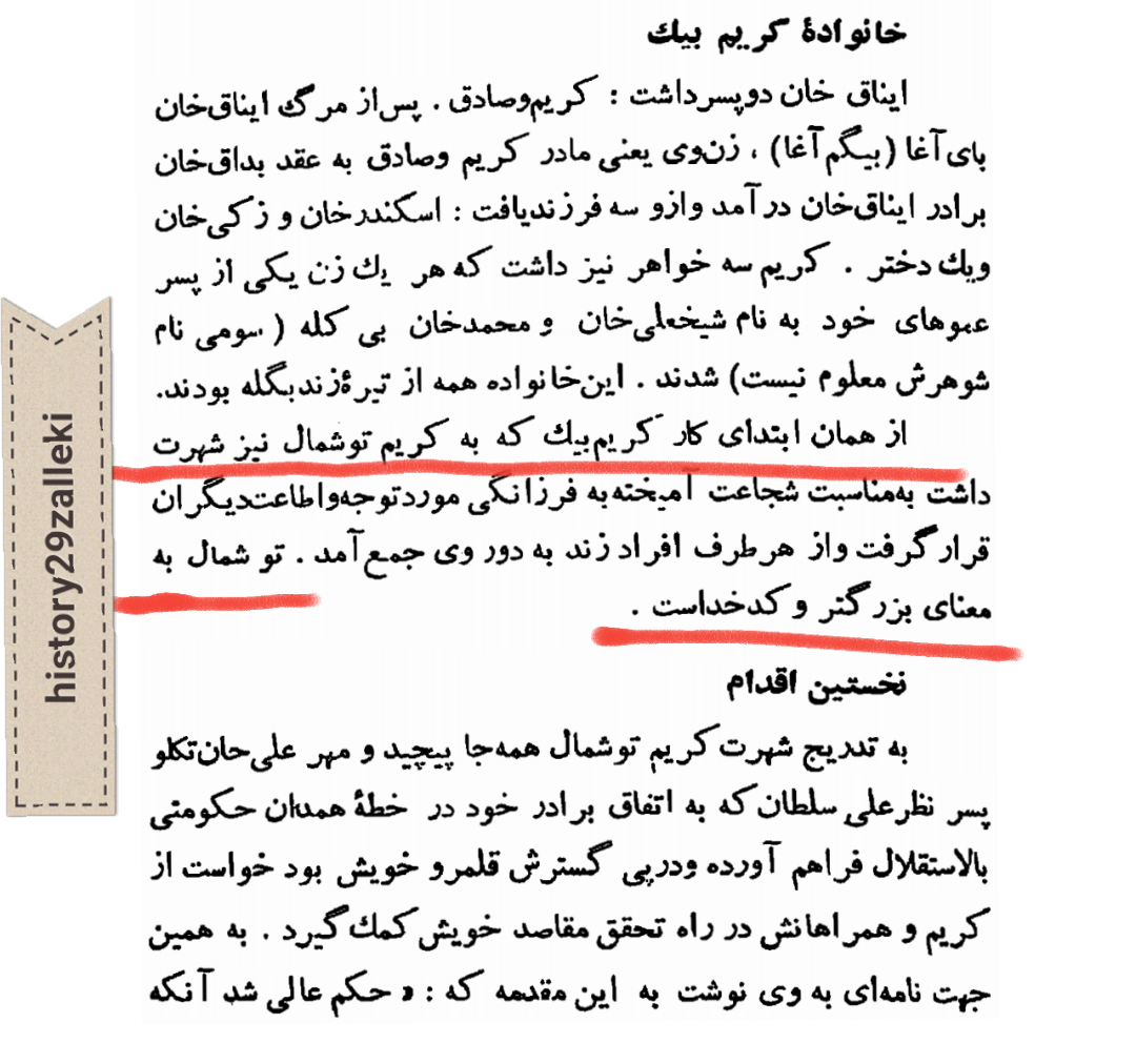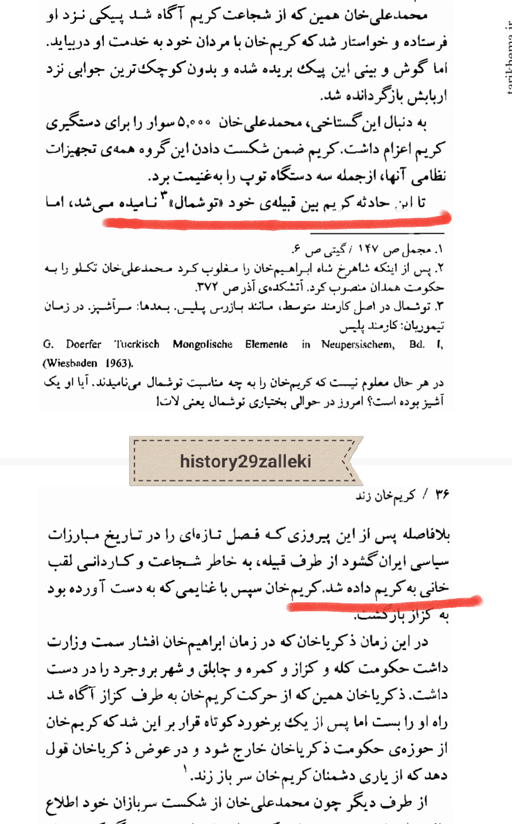 ولی بطور واضح آمده که کریم توشمال بعد از مطرح شدن و پیروزی های مختلف،خان خطاب شد